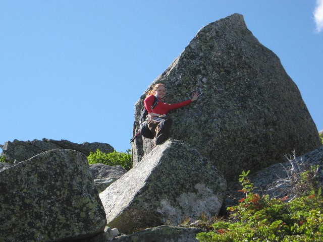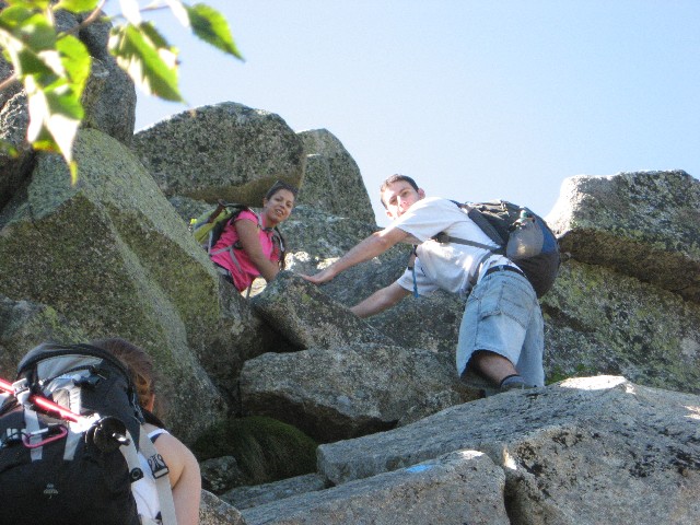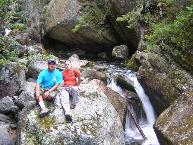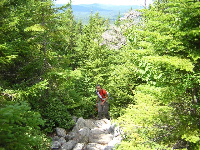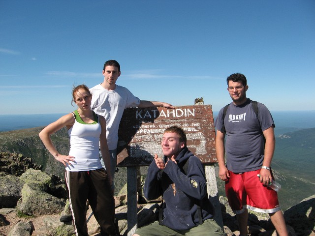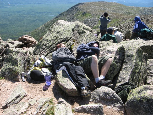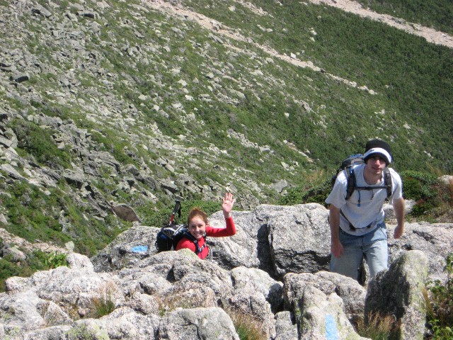 Pictures Tuesday: Jess and Fredy started out with us to climb the Owl but ended up going to the top of Katahdin via the Hunt Trail: Fredy's Pictures Click on thumbnail to view higher resolution picture in new window (longer loading). Close new window or click in bottom task bar to return to this page corrections? Broken Links? Contact: Webmaster ... updated 4/28/08 photo's by Don Wade (IMG...), Fredy Palma (DSCN...), and ?? (CIM), copyright © 2007 by the photographer |