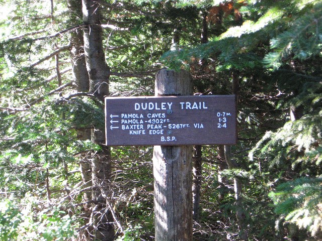 view of the Knife Edge from below. Click on thumbnail to view higher resolution picture in new window. Close new window or click in bottom task bar to return to this page. Then up the Dudley Trail to the top of Pamola Peak. | ||||