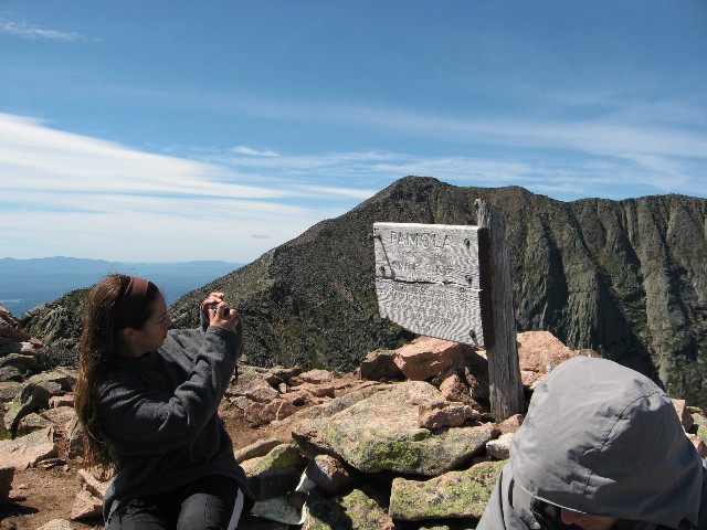 ![]() Carin at top of Katahdin | ![]() View along Knife Edge toward Pamola | ![]() | ![]() | |