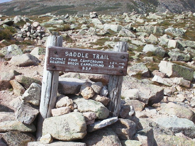 Start of trail down to Chimney Pond from the Saddle. |