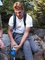 Rest before steep descent on slide. |