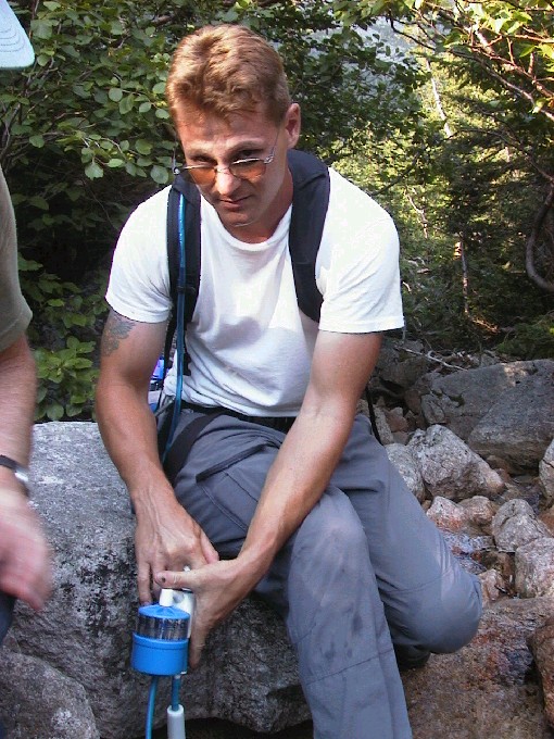 Filtering water from a welcome stream. |