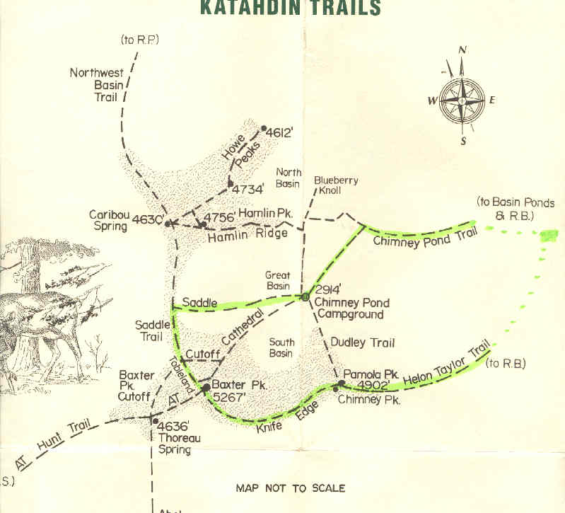 We started at Roaring Brook Campground and took the Helon Taylor Trail 3.2 miles to Pamola Peak which is the southeast end of the Knife Edge. |