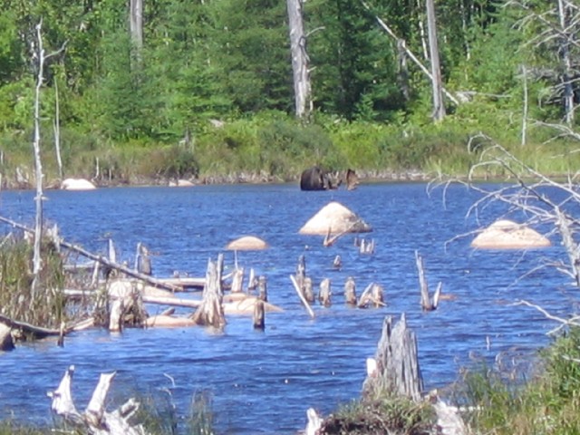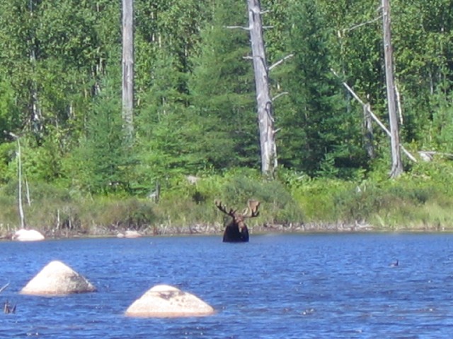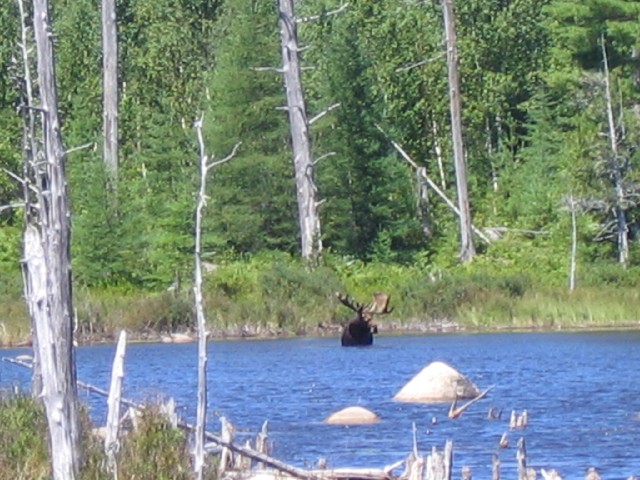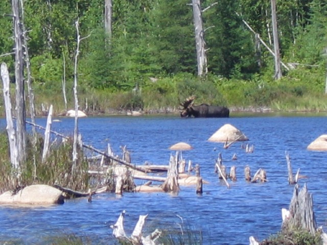 (above) bull moose in pond.