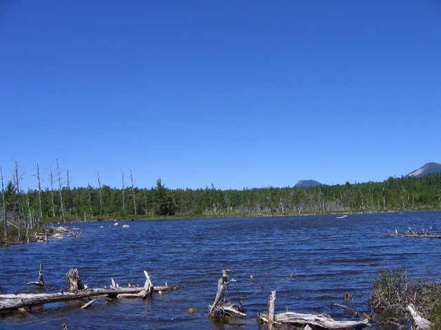 (below) view of pond and view of Mt. Katahdin from pond.